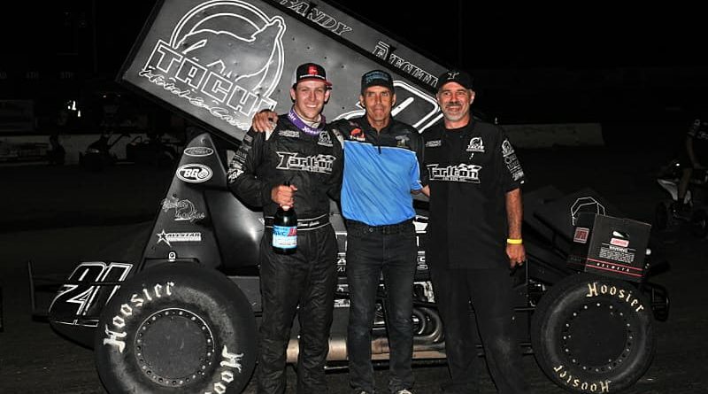 Golobic, who started 12th in the grid aboard the Tarlton Motorsports Tachi-Palace KPC, methodically maneuvered his way through the field into third place on a “rubber-down” dirt track with only four laps remaining. However, it was a caution flag on the final lap that provided the opportunity to score the victory. On the green-white-checkered restart, Golobic proceeded to motor past both race leader Hirst and Kaeding going down the backchute to take the point.