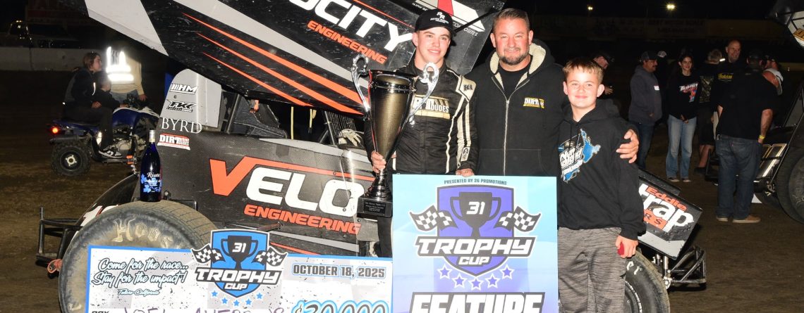 When all was said and done Joel Myers Jr. wrapped up the Abreu Vineyards Trophy Cup 31 title by just three points over Colby Copeland. Myers piloted the Hayward Motorsports No. 19 to the championship with a strong drive in both his heat race and the main event on Saturday night. Copeland’s run was also ultra impressive after visiting the work area early in the race.