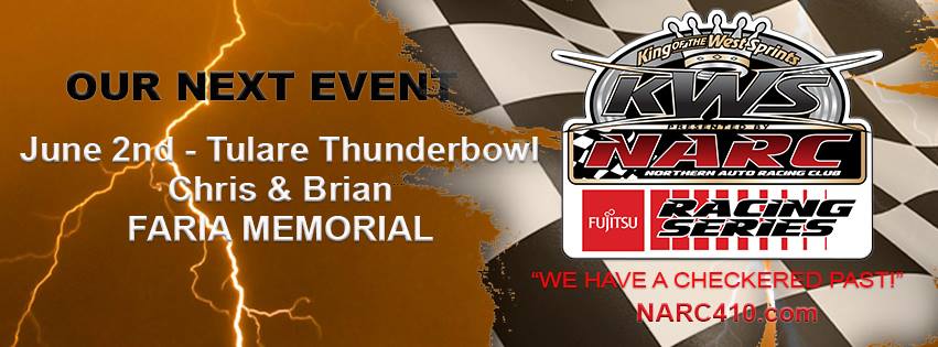 The King of the West-NARC Fujitsu Winged 410 Sprint Car Series will make their final Merle Stone Chevrolet Thunderbowl Raceway start of the season this Saturday at the “Chris & Brian Faria Memorial!”