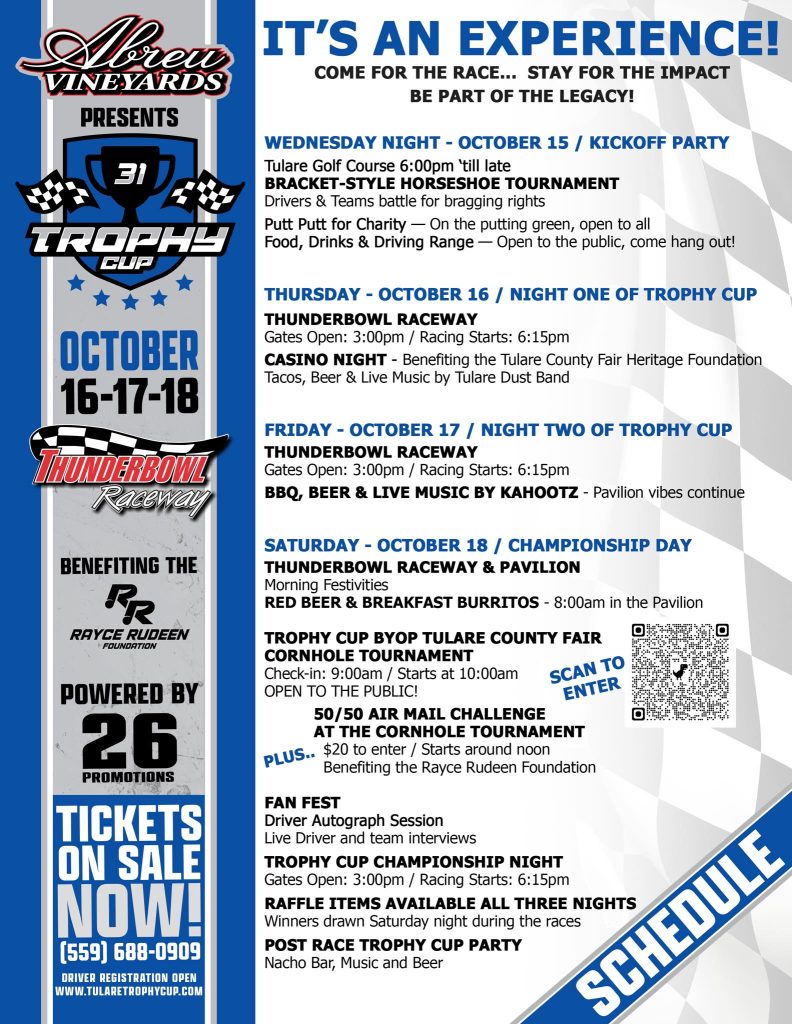 More info on the Trophy Cup, as well as an entry list can be found at www.tularetrophycup.com
