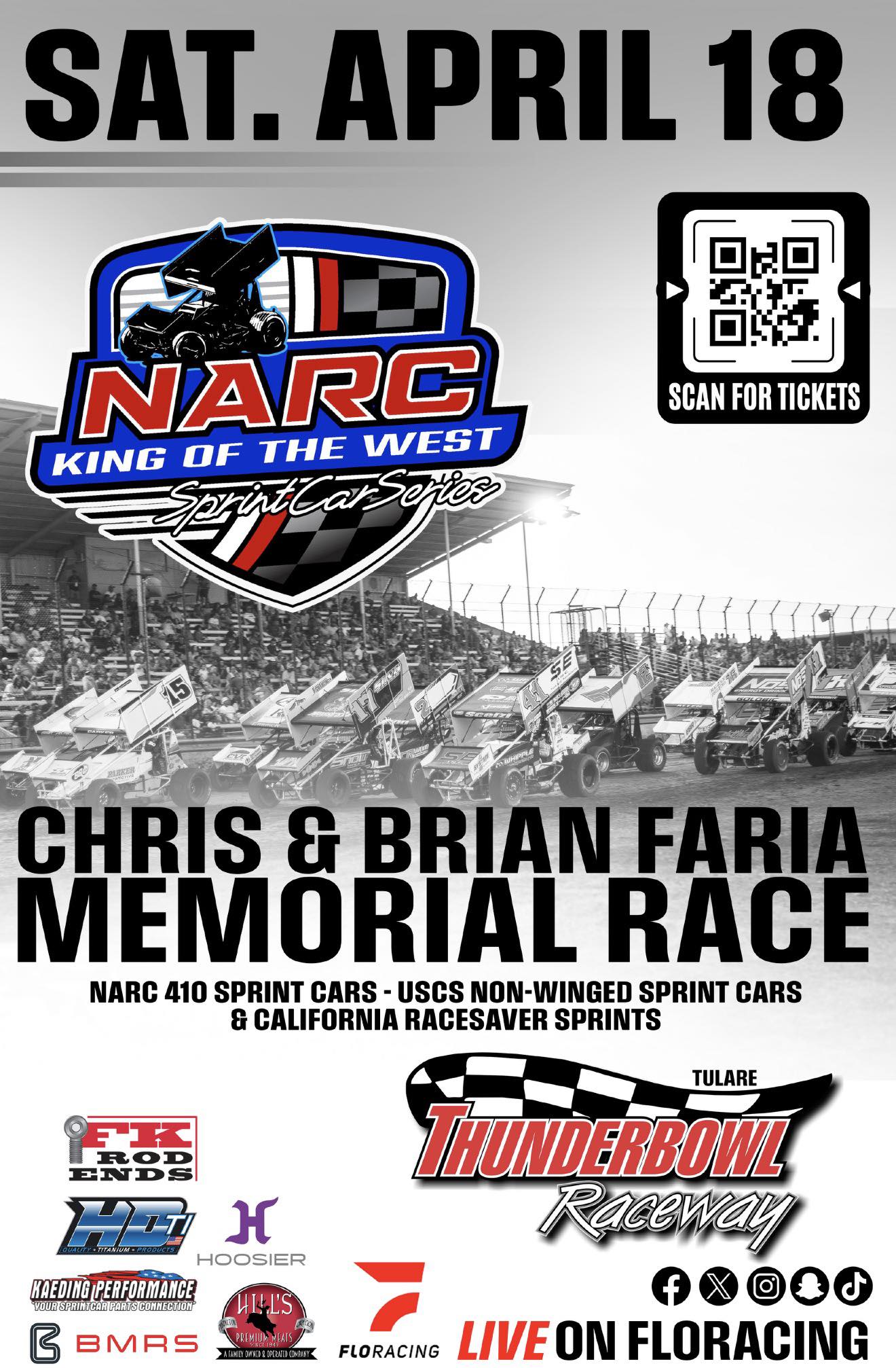The 2026 Stone Chevrolet Buick GMC Thunderbowl Raceway season gets back underway on Saturday April 18th with the NARC King of the West 410 Sprint Car Series, USCS Non-Winged Sprint Cars and California 305 Sprints.