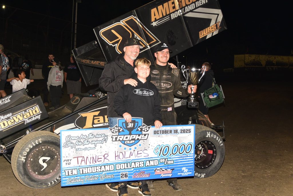 While Myers captured the title Jacksonville, Oregon’s Tanner Holmes picked up a thrilling late race win during the 50 lap Trophy Cup finale aboard the Tarlton & Son No. 21 mount.